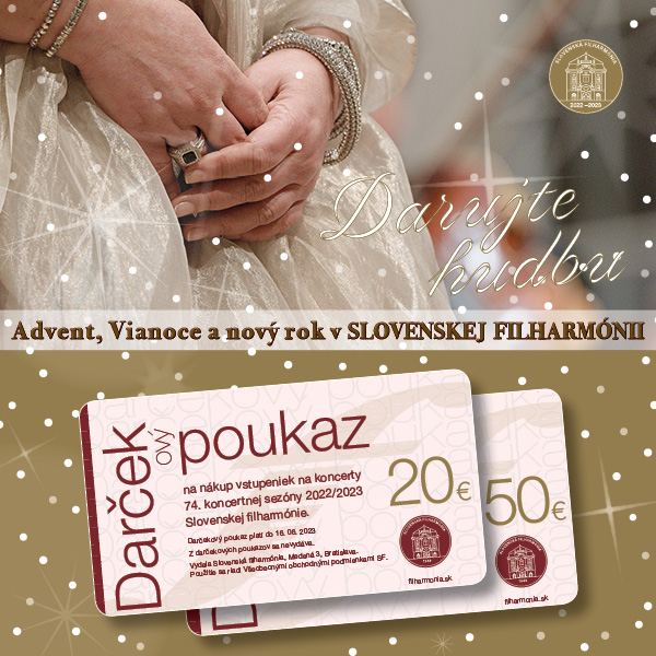 DARČEKový poukaz si zakúpite v Pokladnici Slovenskej filharmónie, Reduta, Nám. Eugena Suchoňa 1, Bratislava, otvorená Po: 9-14.00, Ut – Pia: 13.00 – 19.00.