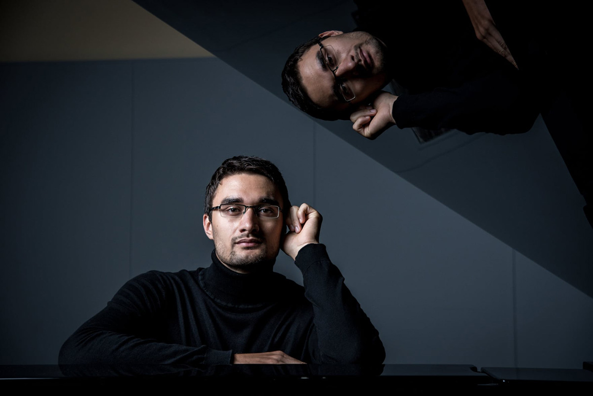 Do svojho programu utorkového večera v Malej sále Slovenskej filharmónie zaradil viaceré diela -  Piano Sonatu multižánrového a polyštýlového estónskeho autora Erkki-Svena Tüüra,  ktorý patrí medzi frekventovaných autorov súčasnej hudby uvádzaných na koncertných pódiách, Simple Constellations Petra Bakla, rodáka z Prahy,  A Luca Marenzio II mladého slovenského autora žijúceho v Španielsku Adriána Demoča a Phrygian Gates amerického kráľa svetového „minimalizmu“ Johna Adamsa, ktorú skladateľ považuje za svoj „opus one“.