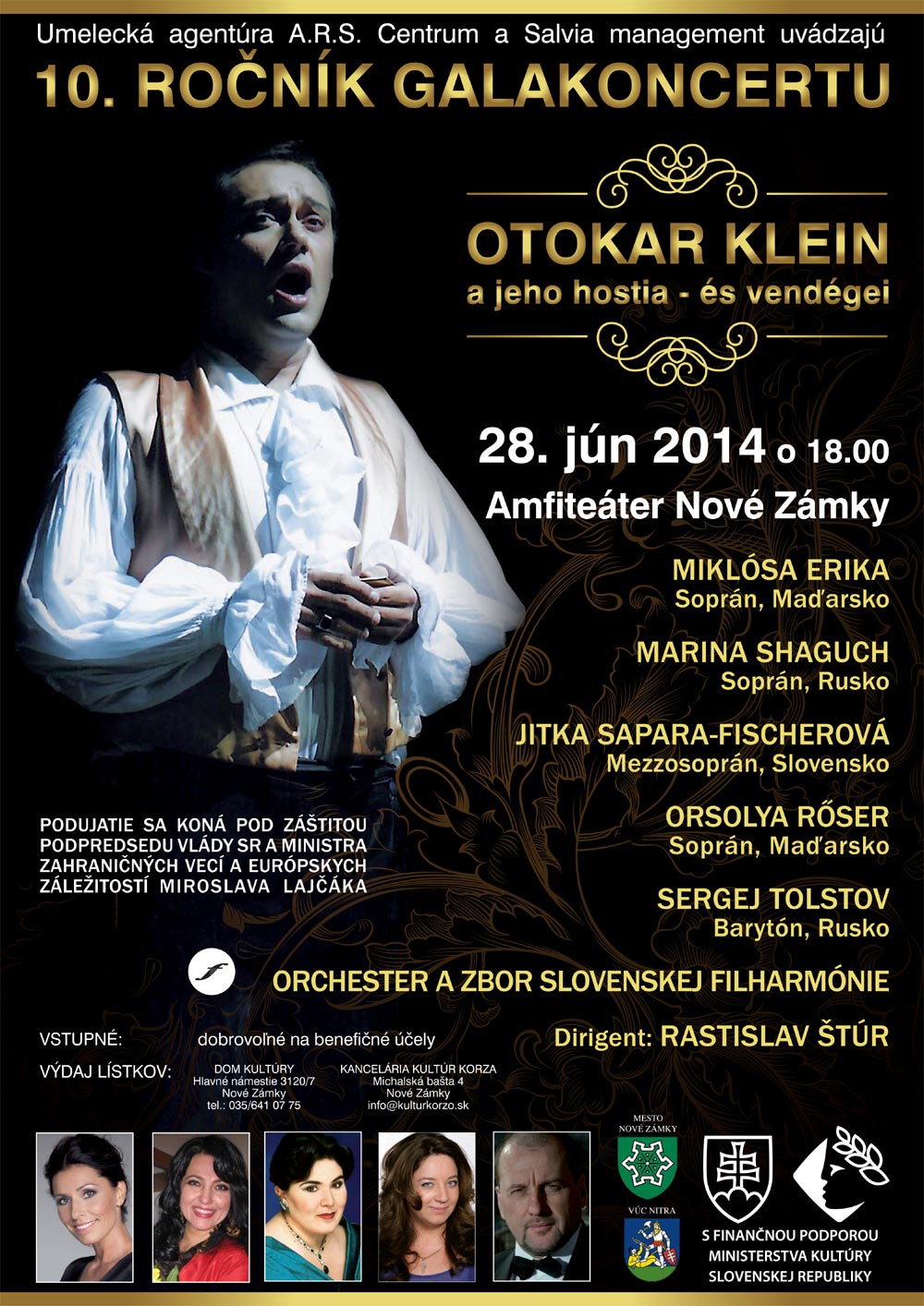 V sobotu 28. júna Slovenská filharmónia, Slovenský filharmonický zbor /zbormajster, Jozef Chabroň/ a hlavný hosťujúci dirigent Rastislav Štúr vystúpia na 10. ročníku Galakoncertu Otto Klein a jeho hostia v Nových Zámkoch. Program je zostavený z operných predohier, zborov a árii, ktoré zaznejú v interpretácii slovenských a zahraničných sólistov. Koncert sa uskutoční v Amfiteátri v Nových Zámkoch o 18.00 h. Koná sa pod záštitou podpredsedu vlády a ministra zahraničných vecí a európskych záležitostí SR Miroslava Lajčáka.