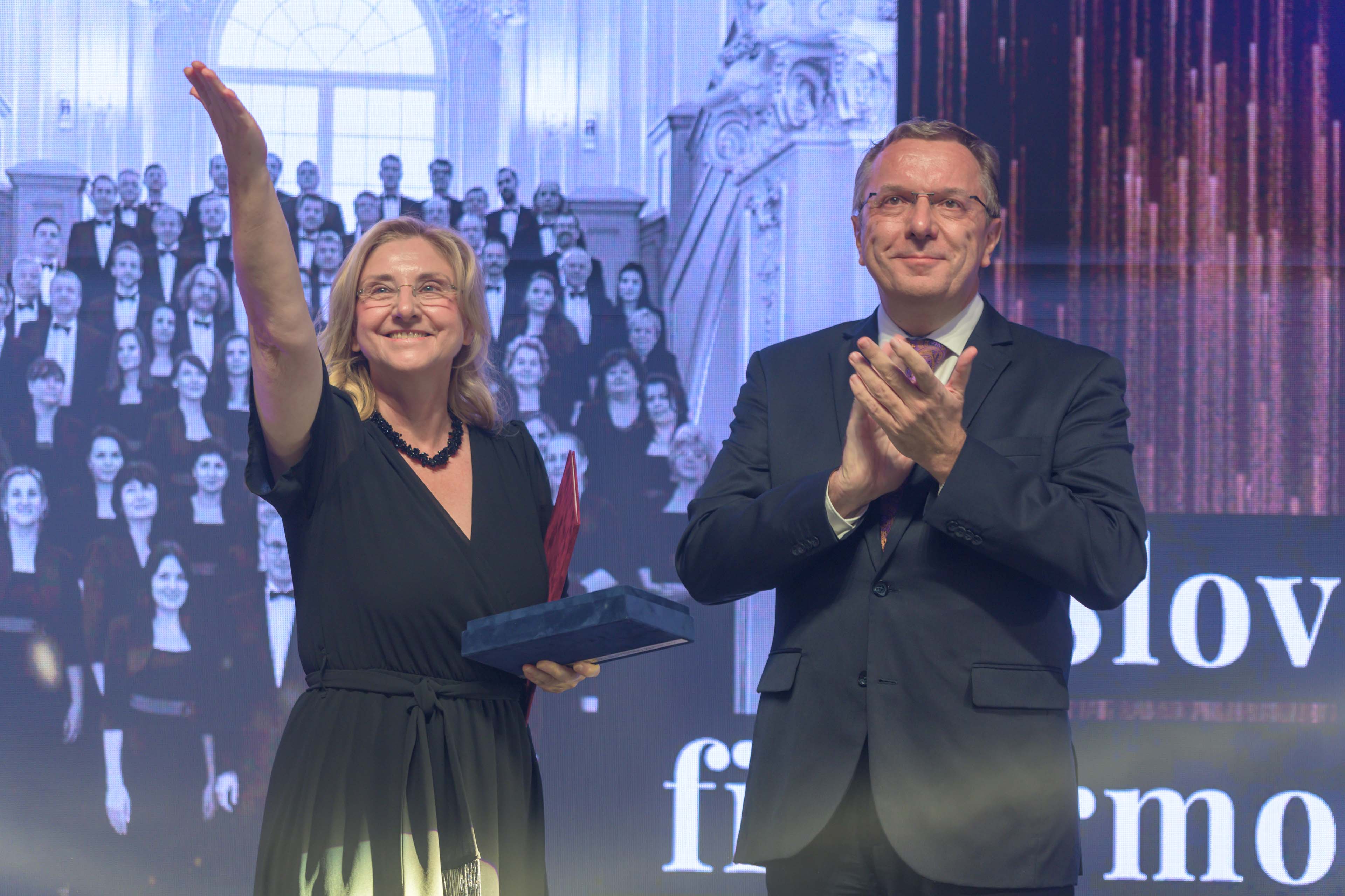 Ministerka kultúry Silvia Hroncová udelila v utorok večer, 19. 9. 2023, v Stĺpovej sieni Slovenskej filharmónie Cenu ministerky kultúry SR pre jednotlivcov, kolektívy a umelecké inštitúcie. Medzi laureátmi žiari aj Slovenský filharmonický zbor, ktorý slávnostný večer umocnil interpretáciou známeho hymnického zboru Eugena Suchoňa Aká si mi krásna. Ocenenie, ktorého autorom je slovenský výtvarník Pavol Macho, z rúk ministerky kultúry prevzal generálny riaditeľ Slovenskej filharmónie Marián Turner.