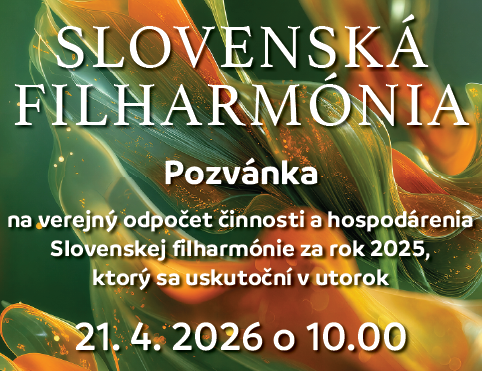 Verejný odpočet činnosti a hospodárenia Slovenskej filharmónie za rok 2025 sa uskutoční v utorok 21. apríla 2026 o 10.00 vo Filharmonickom klube na Medenej ulici č. 3.
