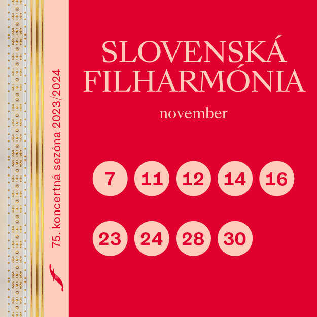 •  Slovenská filharmónia sa predstaví pod taktovkou šéfdirigenta Daniela Raiskina opäť vo štvrtok piatok 23.24 novembra. Návštevníci si vypočujú program, s ktorým sa orchester predstaví na tohtoročnom turné v Južnej Kórei (26. 11. – 4. 12. 2023). Na úvod zaznie Koncertná predohra Es dur Jána Levoslava Bellu, nasledovať bude Travel Notebook pre klavír a orchester Alexeya Shora, Rapsódia na Paganiniho tému pre klavír a orchester Sergeja Rachmaninovasymfonická fantázia, op. 32 Francesca da Rimini Piotra Iľjiča Čajkovského. Sólistom večerov bude  kórejský klavirista Yekwon Sunwoo, ktorý študoval na Julliarde i Curtis Institute of Music vo Philadelphii. Je laureátom viacerých medzinárodných súťaží. V Slovenskej filharmónii debutoval v roku 2017 po boku Juhokórejského KBS Symphony Orchestra. Koncerty sa začnú o 19.00.